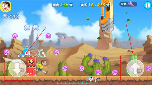 接着选完关卡后进入到游戏内,左边的按键是下蹲,右边则是跳跃;