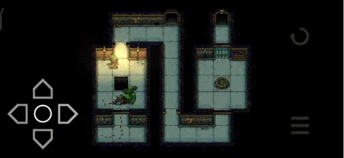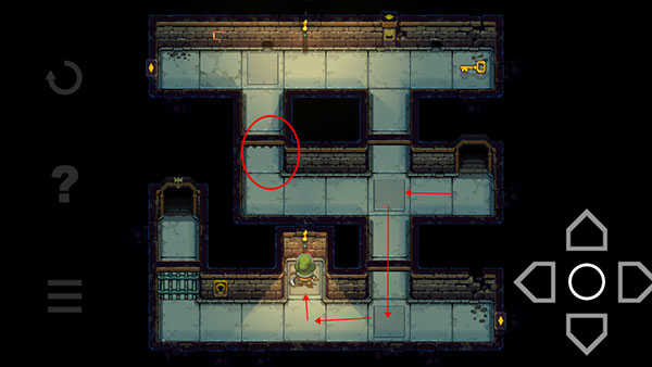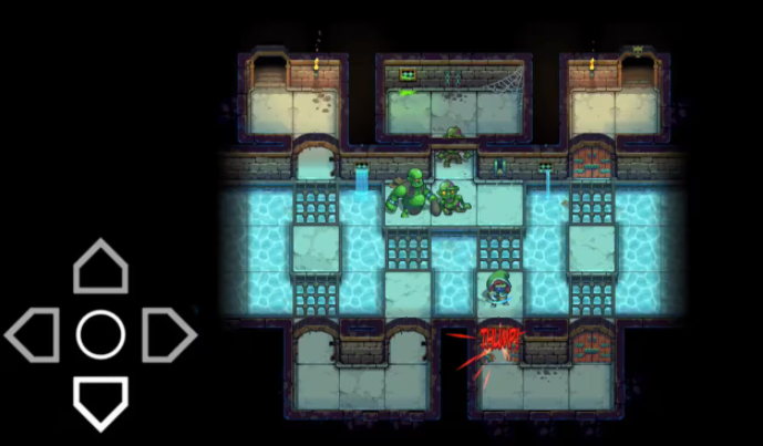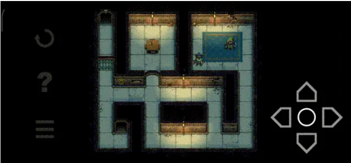 进入地牢第一层,有很多僵尸,注意僵尸们一次只移动一格,可以利用下方的两层格子路来躲避他,点击左侧的“?”按钮就可以获取提示。(实在想不明白的可以联想一下推箱子游戏哦~)
