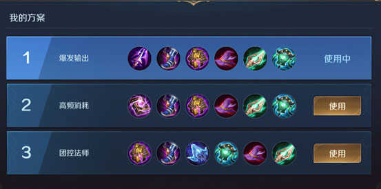 前期用法老的审判提升持续伤害能力,补法穿鞋后出冰霜哀歌提升控制能力,随后出芭蕉扇,提升机动能力以及普攻触发的额外伤害,之后出魔灵法帽大幅提升输出能力,后期出碎空杖提升对坦克的伤害。