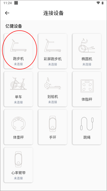 2、点击去之后,就会发现很多亿健设备,选择跑步机。