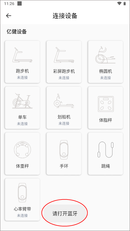 3、在点击跑步机时提示需要开启蓝牙,因此需先启动手机与跑步机上的蓝牙功能,保持蓝牙距离不要太远,匹配成功即表示连接完成。