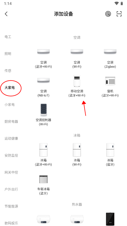 根据需要连接的设备,我选择了家中的移动空调,它同时支持蓝牙和WiFi。