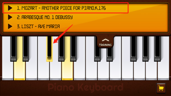 3、“training”中支持用户跟练各种经典乐谱,更快速的掌握弹奏技巧。