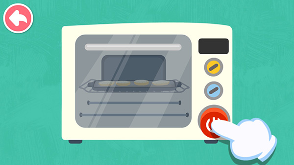做好饼干的形状之后就可以放到烤箱里烤啦,按下开关等待即可。