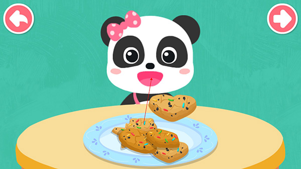 之后就可以让宝宝喂小熊吃饼干啦,将饼干移动到小熊嘴里即可。
