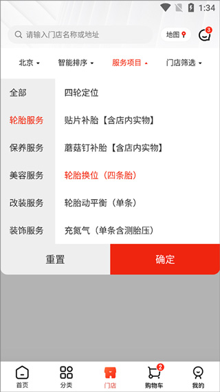 怎么预约服务1、用户打开并登录京东养车app后,进入门店页面中点击【服务项目】,在弹出的下拉选项中选择服务项目,例如这里选择轮胎换位