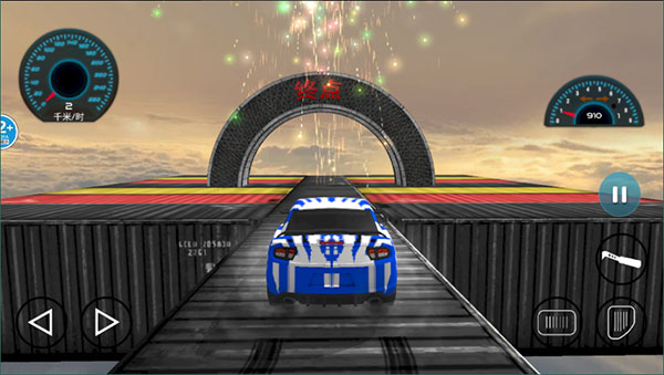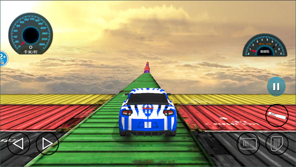 2、游戏的操作方式非常直观,玩家需要驾驶车辆在悬空的跑道上行驶至终点,利用左边的按键来调整车辆的方向,右边的按键则负责控制车辆的加速、倒车和制动;