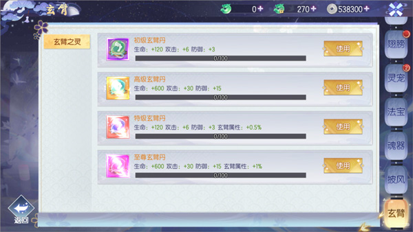 玄臂的等阶越高,所需要花费的进阶石数量越多,因此玩家在游戏的过程中,每天都需要完成玄臂试炼,以保证拥有充足的进阶石。