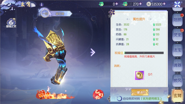 此外,使用玄臂之灵灌注玄臂能够快速提升玄臂的基础属性,让你的玄臂拥有更高的起点。