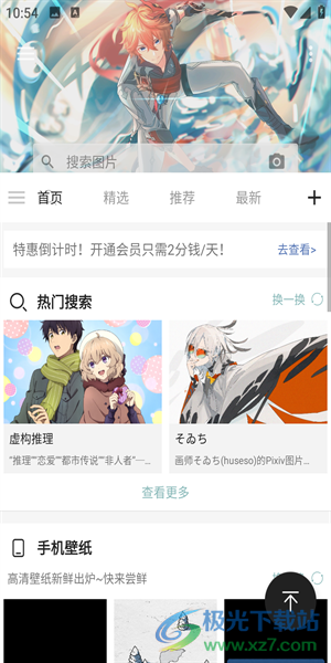 3、在界面可以看见各种壁纸分类,可以查看精选的、推荐的、最新的内容,还有更多热门资源。