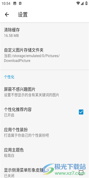2、点击设置可以设置不同的个性化模式,查看推荐内容,也可以设置不感兴趣的图片不推荐。