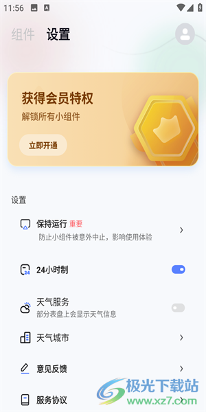 3、点击设置可以查看24小时制、天气服务、天气城市、意见反馈等等。