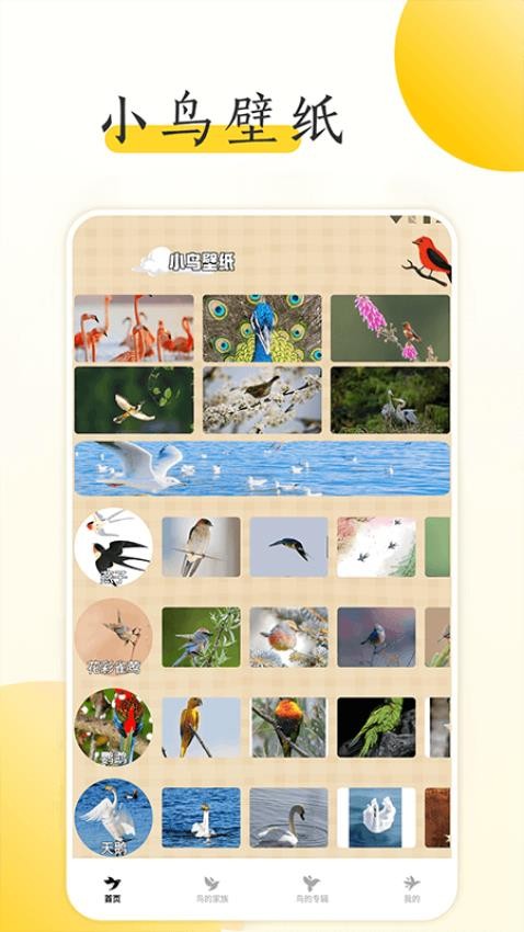 收录了全球各地的多种鸟类壁纸,包括国内外特色鸟类、稀有鸟类等,让用户可以随时更换不同款式的壁纸。