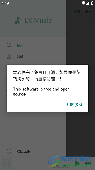 卡拉OK式歌词同步,纯绿色软件,无插件、无广告,均衡器、混响、音量等随意调。
