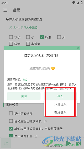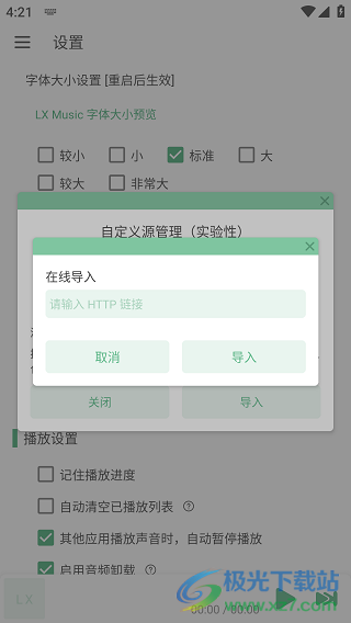 5、例如选择在线导入,将链接输入进行入就可导入啦,返回到自定义管理哪里,选择导入的文件就可成功啦。