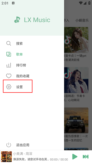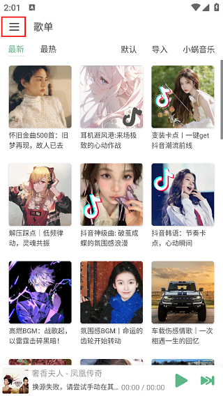 1、首先需要打开手机中的软件,在洛雪音乐首页中,可以看到左上角的三条横线“管理”图标,进行点击。