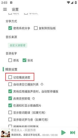 3、然后就会来到“设置”窗口中,在这里我们要找到“播放设置”一栏中的“记住播放进度”选项,最后将其小方框给勾选上就可以了。