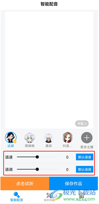 3、不仅可以自由选择主播,还可以根据自己的需求,对语速和语调进行调整,拖动滑块即可设置。