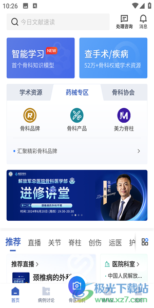 1、下载软件之后打开界面可以看见智能学习、查手术疾病等等。