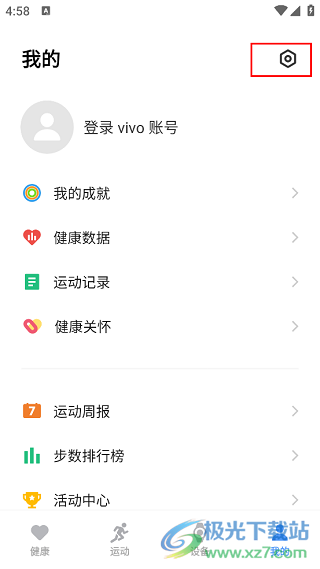 1、首先打开手机中的vivo健康,在主页面中需要点击右下角的“我的”。