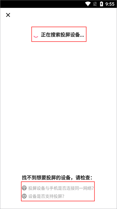1、投屏的设备与手机是否连接了同一网络?;