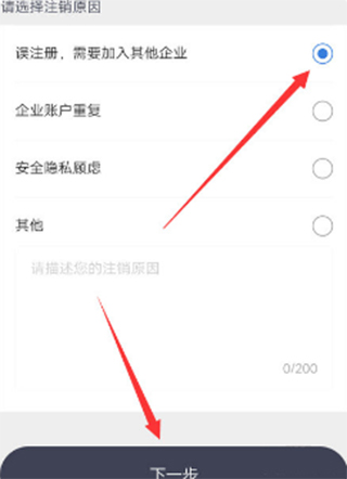 3、接着选择注销原因,并点击下方的下一步