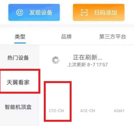 返回添加页面点击天翼看家分类
