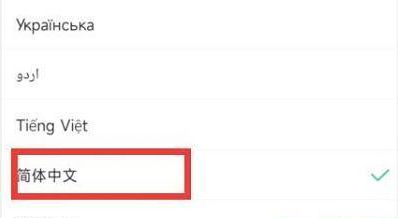 3.继续向下滑动,找到简体中文,然后单击右上角的字符。