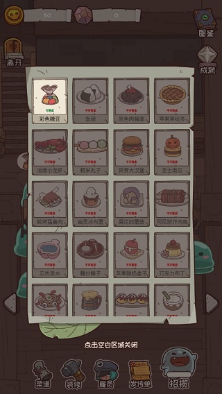 聘请好大厨后,就可以开始解锁配方和食材,如下图所示:
