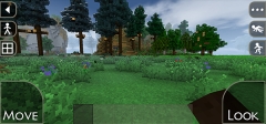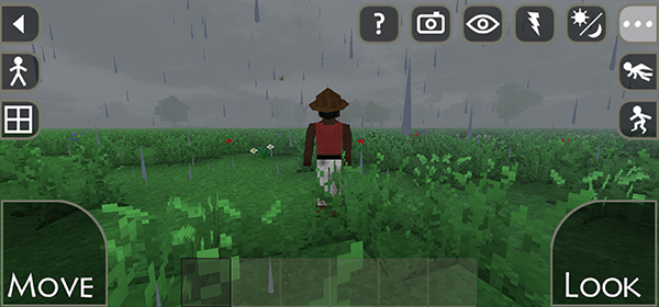 右上角的功能按钮分别可以控制角色的视角、控制场景的天气等,我们要做的就是在这个地图中存活下去。