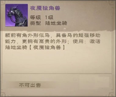 之后就是坐骑方面,虽然说越好看的坐骑越贵,而且不少坐骑都需要玩家们氪金来获得,但是也有一些好用的可以花时间获得,比如说这个夜魇独角兽,实力很不错,而且颜值也很高,是一个可以一直用到中期的坐骑。