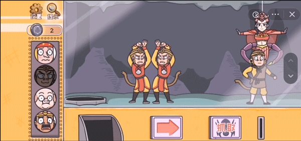 长按唐僧会念紧箍咒,孙悟空就会出现,抓住就可以通关了。