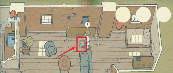 2、进入小木屋后可以在客厅中拾取沙发旁的画框