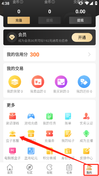 1、进入app主页,点击“我的”-“盒子客服”