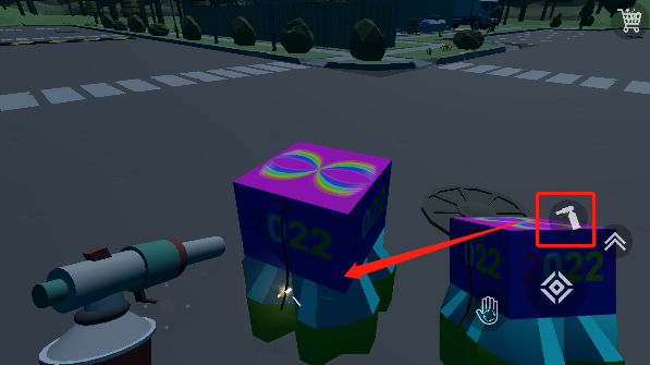 将烟花拿到手上后点击下图所示位置点火,即可生成手上拿着的烟花模型