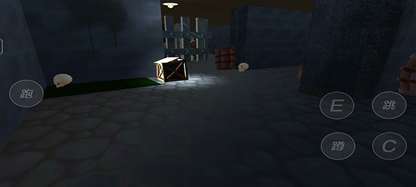 在右边有跳跃和下蹲的动作,E键用于拾取物品,游戏环境广阔,玩家可以自由探索。同时要警惕被邦尼发现,同时寻找邦尼的日记以获取密码,最终打开逃生之门。