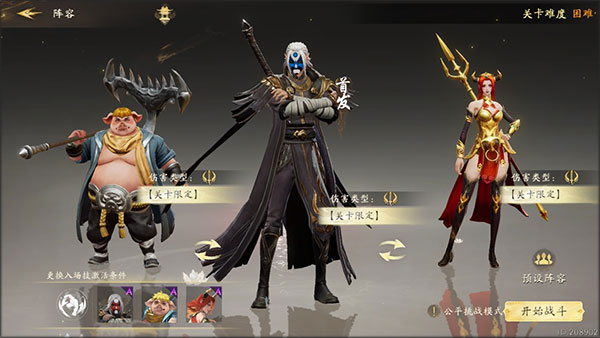 开放20个可操作角色,包含S级角色孙悟空、S级三眼、S级如来、S级杀心等