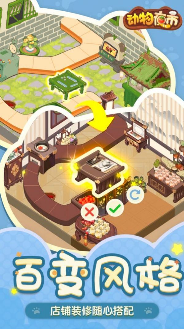 动物夜市是一款极其可爱的模拟游戏,再现了夜市摆摊的情景。在这个充满卡通元素和冒险精神的世界中,玩家们能够充分发挥他们的才能。每一个场景都设计得精致而真实,让玩家沉浸在深深的治愈之中。在游戏中,玩家需要烹饪各种美味的食物,以此吸引更多的客人光顾,从而赚取丰厚的利润,并用这些收入来装饰和扩展自己的摊位。