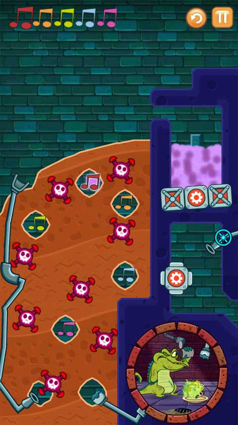 2、第一关就是按照正确的顺序将水导入所有的音符,并且还要保证小鳄鱼有水洗澡。