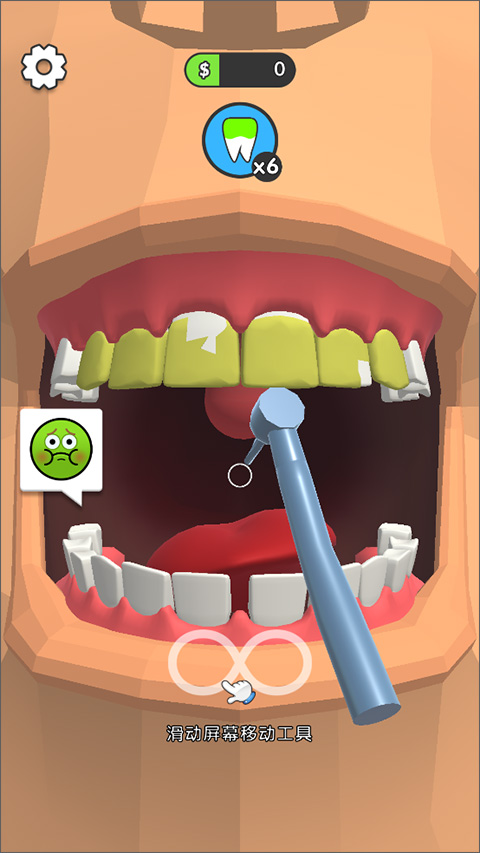 第二关,玩家不仅要清理患者牙齿上的菌斑,还要清理牙结石;