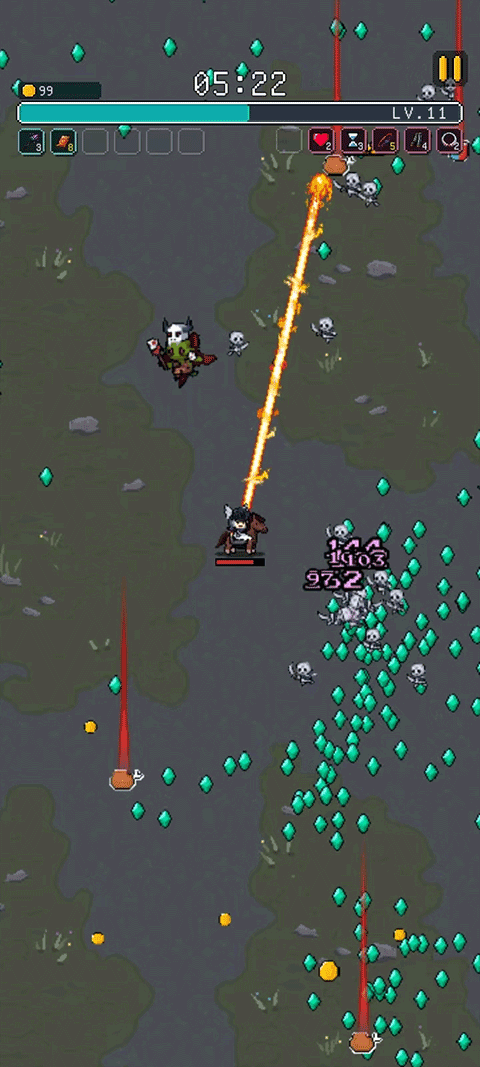 尽量避免被小兵包围,一旦陷入大量小兵的包围,血量会迅速减少,导致游戏失败。主要目标是攻击拥有两个角的大兵,这样可以获得神秘的力量。