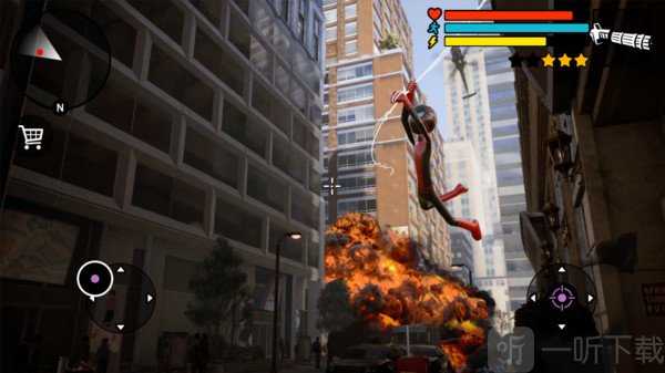在最自由的城市冒险中,挑战反牛顿力学设定,你可以利用蜘蛛丝直接攀爬楼层。