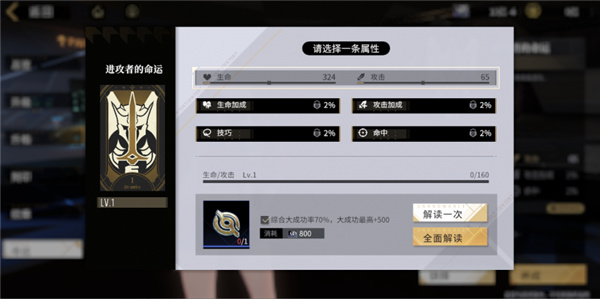 5、命运突破:在属性解读达到特定等级之后,必须进行突破才能继续解读该属性。突破不仅可以提高相应属性的成长率,还能获得一个突破点,这些突破点可用于命运抉择,每个命运最多可以获得五个突破点。