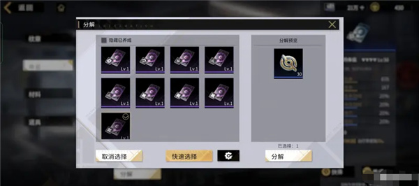 全面解读:使用全面解读会连续解读至选中属性等级提升或材料耗尽;