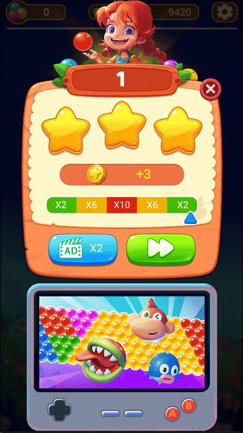 全新的泡泡龙关卡,全新的游戏界面,快来体验吧!