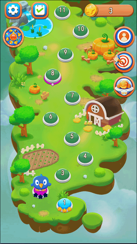 然后,在首次玩游戏时,玩家会被引导至教学关卡,在那里他们需要在特定目标的指引下完成消除泡泡的任务。