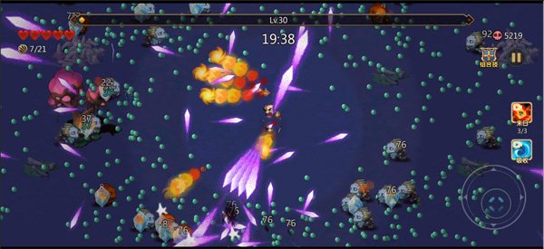 1、大家可以体验到刺激的割草冒险玩法,游戏中的武器和技能设计都非常优秀;
