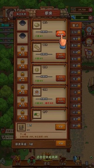 3、你可以通过厨房去制作各种不同的食物获得更高的收益。