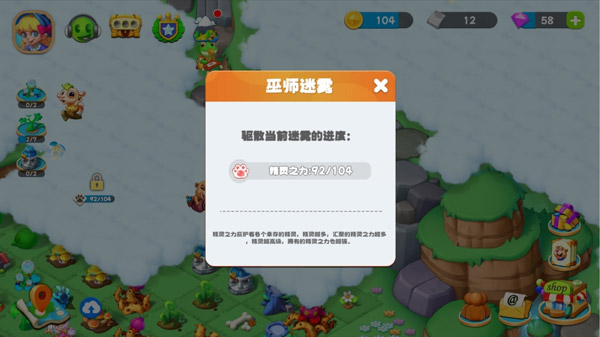 当岛中精灵们的精灵之力总和达到一定数量要求后,就可以驱散迷雾,开拓更多的土地啦!