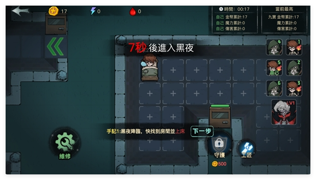 不要早早的把弓箭摆上,要先把床的等级加起来,等狼人来了在放弓箭也来得及,金币够了要赶快买魔能宝珠,之后都会用到。